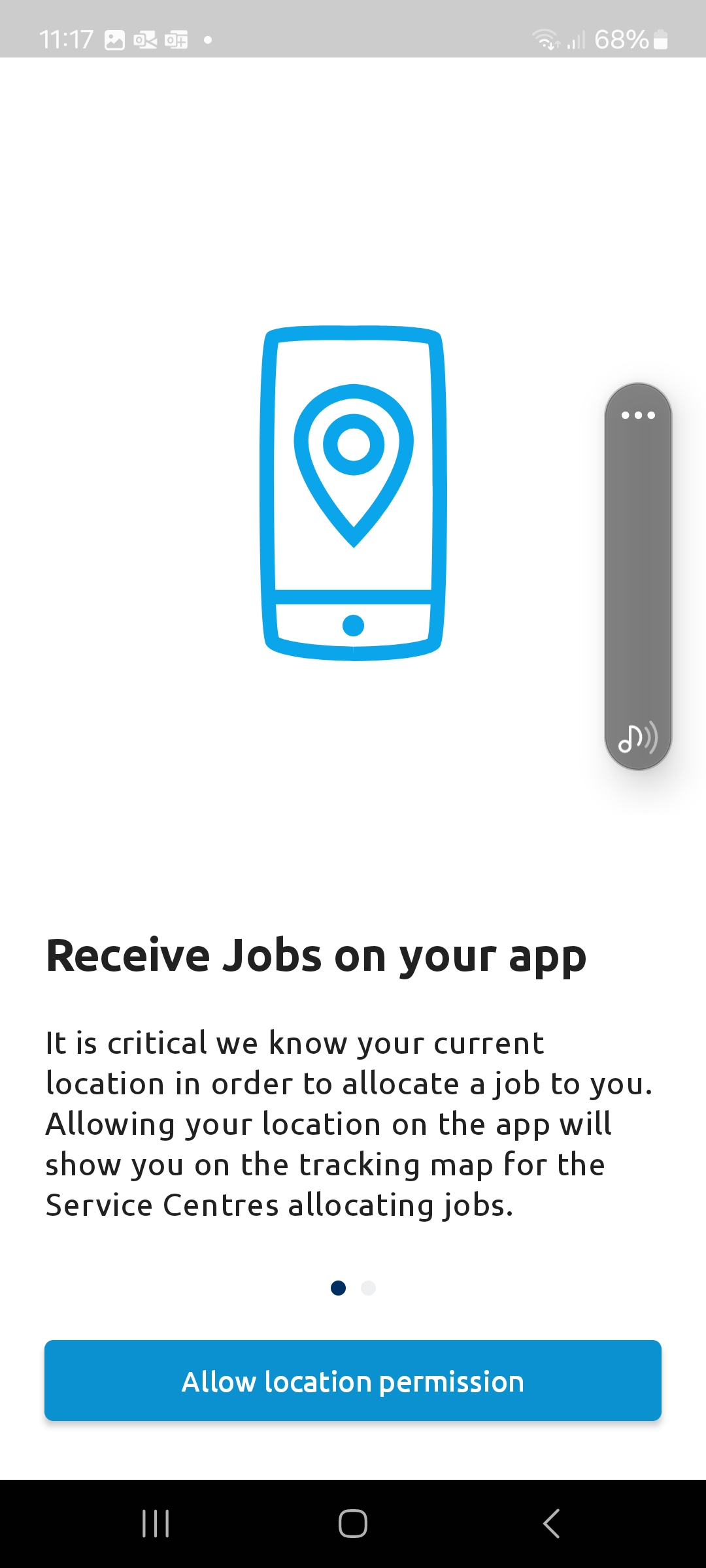 After logging in the app will prompt for location permission. Tap Allow location permission.