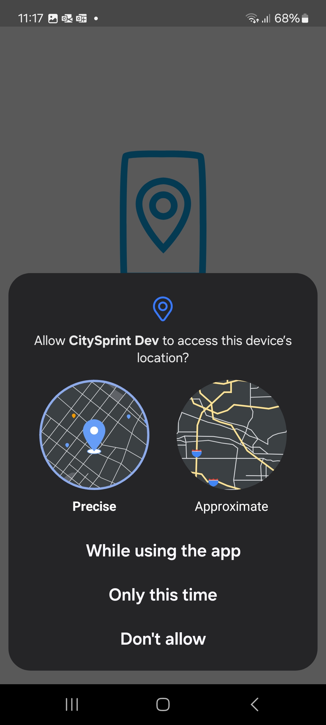 On the next screen, tap the Precise circle, and then tap While using the app