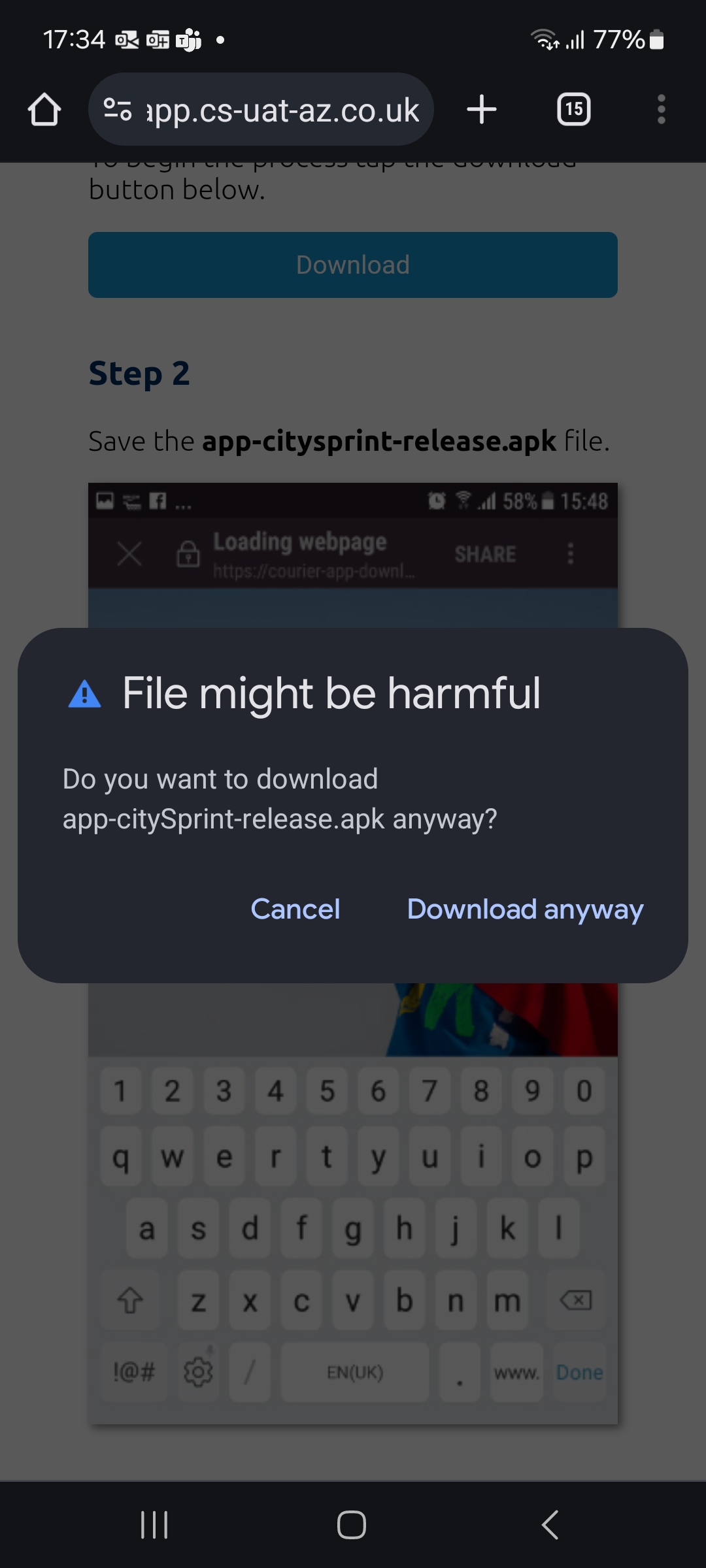 Save the app-citysprint-release.apk file. Select the download anyway button.