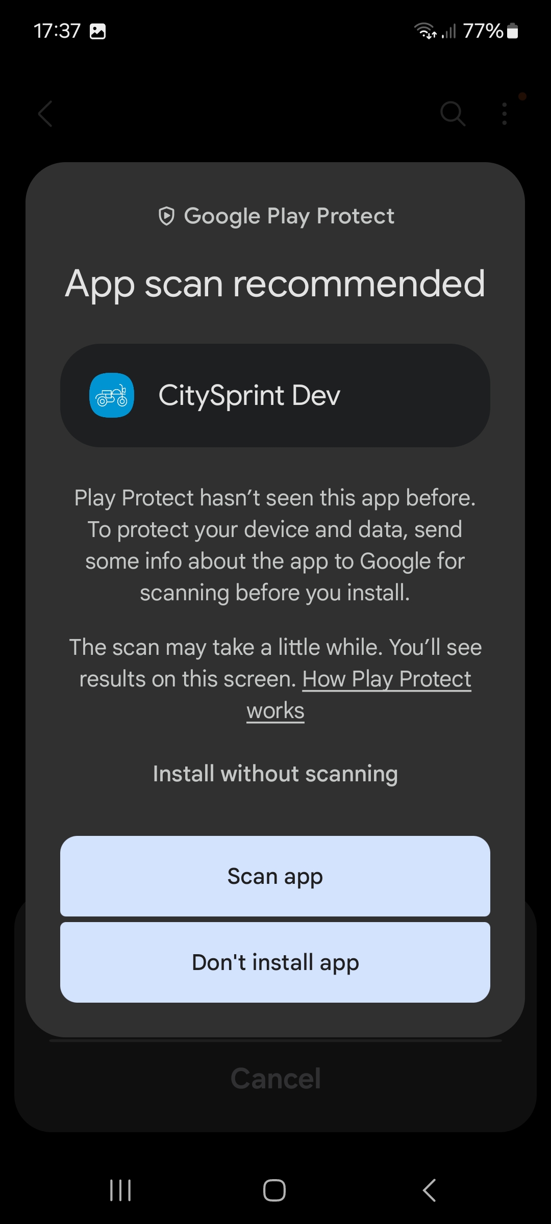 Tap Install without scanning..